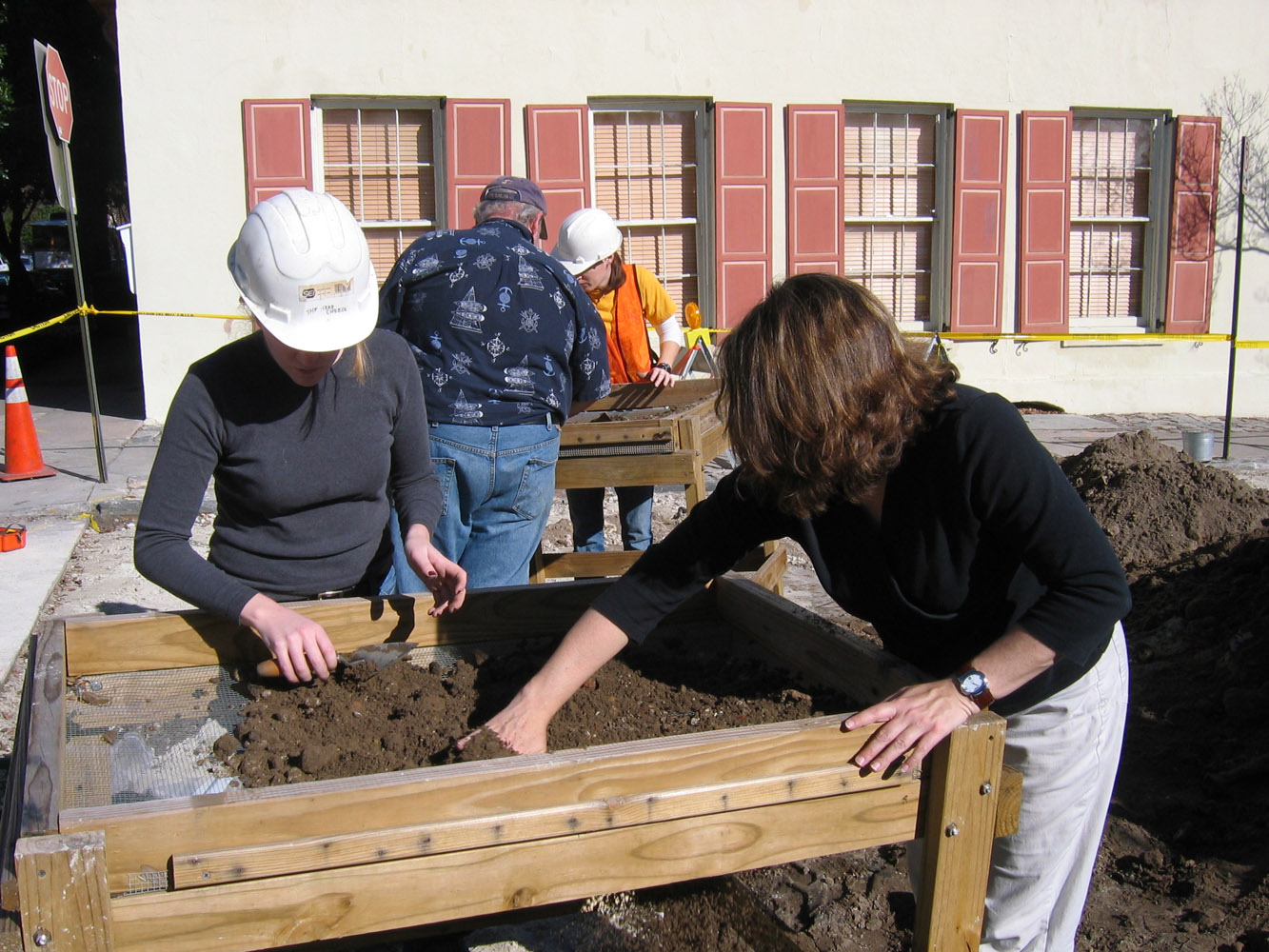 Further hand trowelwork and screening will continue tomorrow. On the surface it may seem that little progress was made today, but Martha Zierden remarked that she felt like the archaeological team had made substantial headway in understanding what has been uncovered so far.
