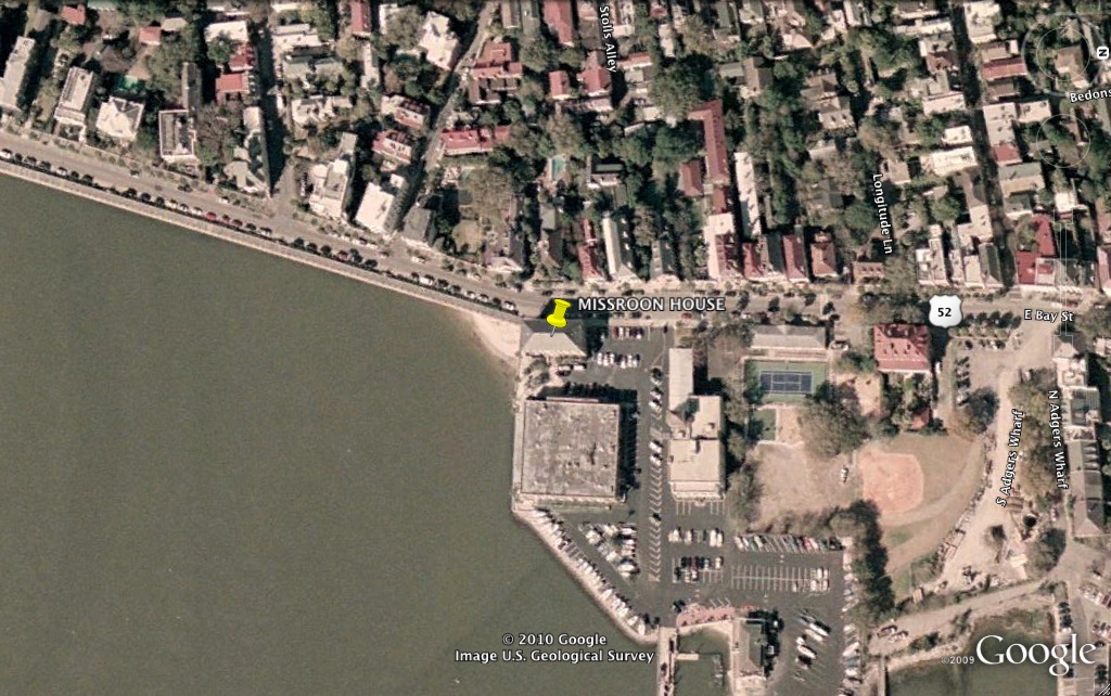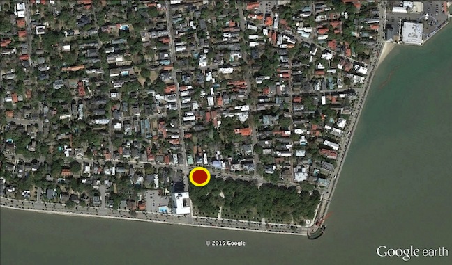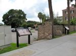 If you recall the earlier posting about this topic, we’re seeking to identify the line of bricks and stones that is visible along much of the northern edge of White Point Garden (see the photo below). This line doesn’t seem to be related to either the boundary of the park or the curb of South Battery Street, and so we suspect it is a vestige of a wall constructed in the summer of 1769 as a sea wall to protect the extensive and expensive fortifications that once stood at White Point. There is no documentary evidence to suggest that this wall was ever dismantled, and thus it would have stood as a visible, useful barrier for the neighborhood until a new wall was built around the western extension of White Point Garden ca. 1850.