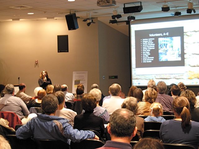 To open the program, Task Force co-chair Katherine Saunders took a few minutes to acknowledge the sponsors who made the archaeology possible and the volunteers who contributed so much to its success. Without the assistance and enthusiasm of these dozens of people, this long-anticipated project might never have come to fruition.