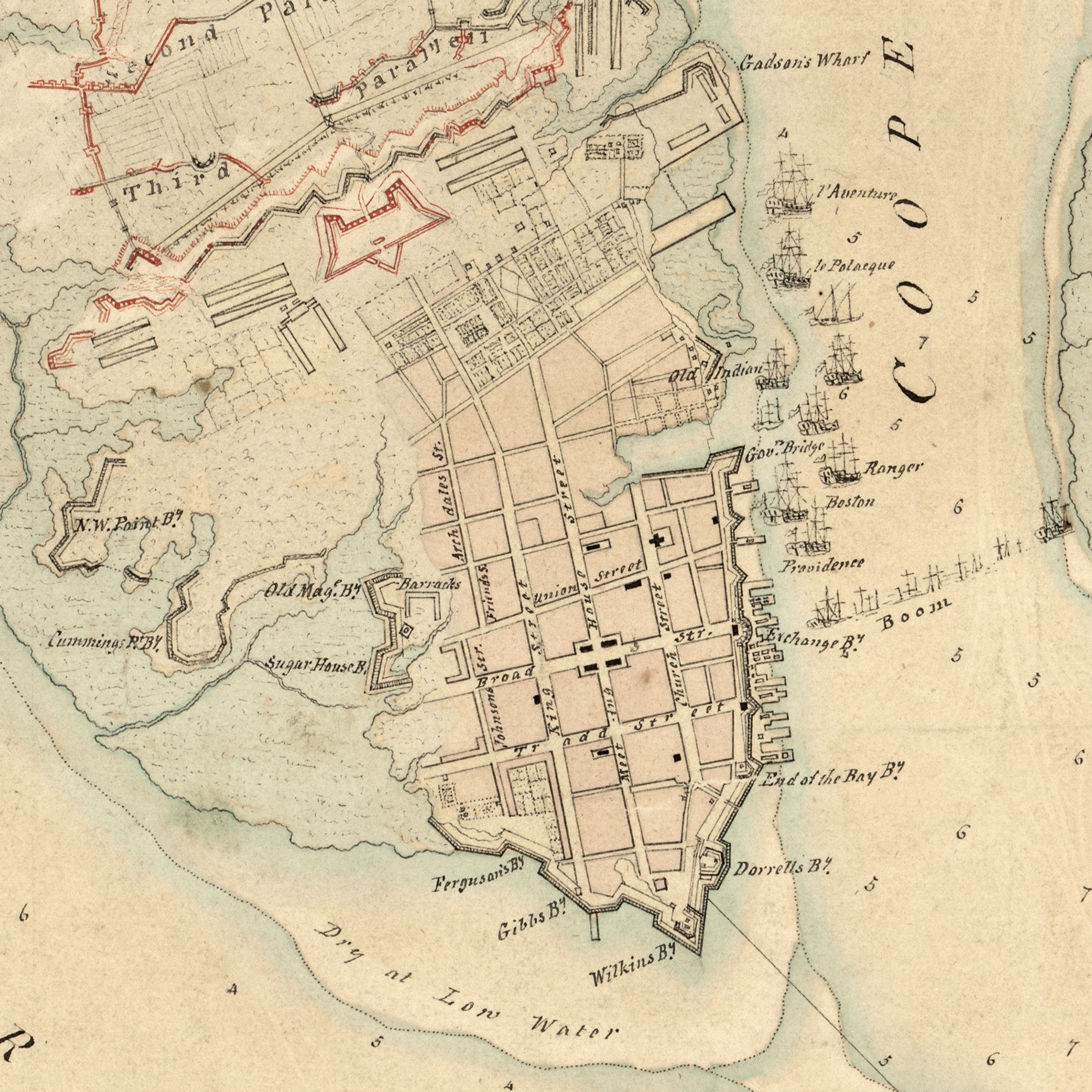 The Investiture of Charleston, S.C.,” a ca. 1780 British map now among the collections of the U.S. Library of Congress